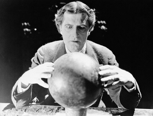 Larry Kent with Rubbing Crystal Ball Man looking into a crystal ball. Movie still from with Larry Kent and Jean Arthur. — Image by © Bettmann/CORBIS